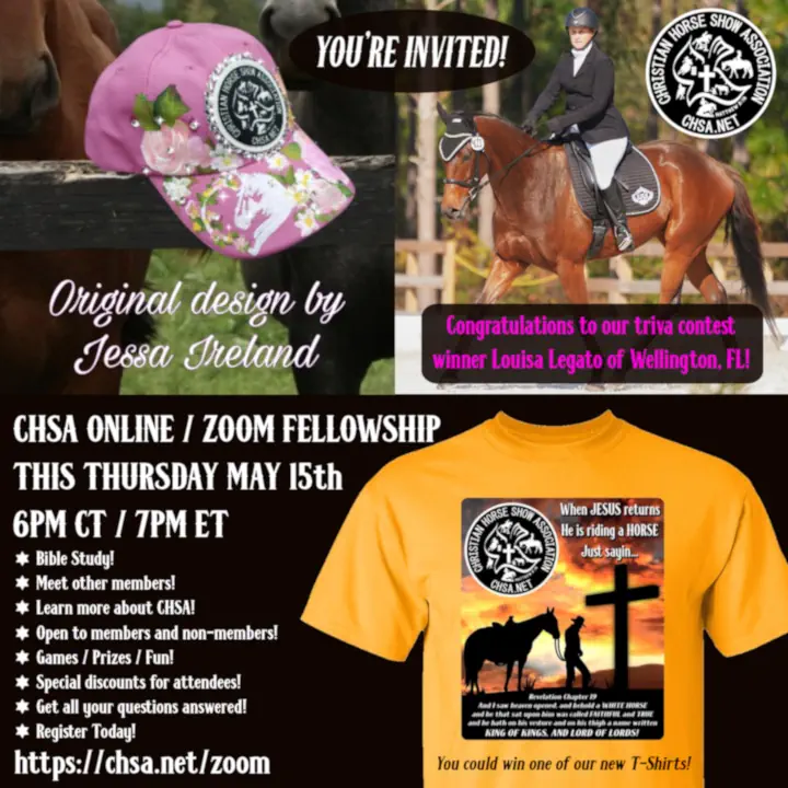 Happy Mother’s day from all of us at the Christian Horse Show Association! To celebrate you can use CHSAMOM to save 15% on all merch and memberships! (you know she would LOVE one of our new “When JESUS returns, He is riding a HORSE” T-Shirts, Hoodies or Mugs!) – and before you ask, she does […]