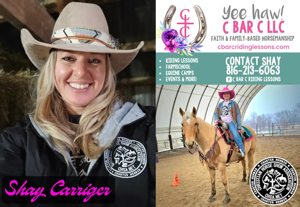 God has faithfully, and beautifully put the C Bar C team together: Ms. Shay is a certified teacher & counselor, who has experience teaching adaptive riding lessons and able-bodied lessons as well. She, along with her Team, enjoy sharing the Love of Jesus in energetic, dedicated, and a creative ways at C Bar C. With the support of family, The Team provides a ministry for all who desire to come.