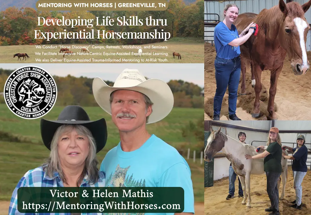 Going back a little, the Lord blessed me with a 34-year corporate Information Technology (IT) career in Tampa Bay, Florida before leading us to relocate to East TN, downsize, and ultimately for me to retire from IT in early 2021. Also, I became an ordained elder in the Evangelical Presbyterian Church (EPC) in early 1998 and have served the Lord in multiple local churches, ministries, and leadership capacities since then. Being able to focus fulltime and combine my passions for the Lord, evangelism, ministry, horses, and helping at-risk youth, in what I consider to be a form of Equine-Assisted Ministry (EAM), is a gracious God-given blessing I cherish. Having a Cowboy Church just around the corner from where we now live and helping them establish a Horse Fun Shows outreach ministry a few years ago has also been a rewarding blessing. So, the opportunity and privilege to join this evangelistic-minded, horse-loving, Christian ministry and network known as the Christian Horse Show Association (CHSA) is a welcome Spirit-led discovery and I welcome and encourage you to join us! Sincerely, Victor Mathis