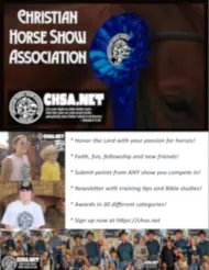 * The Christian Horse Show Association is a 501c3 Non Profit organization under the umbrella of Davis Ranch Ministries Inc. ID:921303464 In accordance with government regulations, Standard, Non-Competing, and Lifetime membership fees are not tax-deductible. Donations, and Charter membership fees in excess of the Lifetime membership fees ARE tax deductible. For further information, including ministries we support, see our Frequently Asked Questions Page