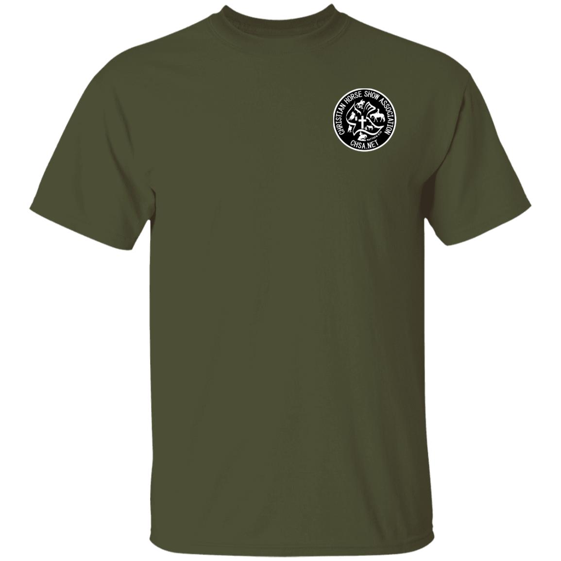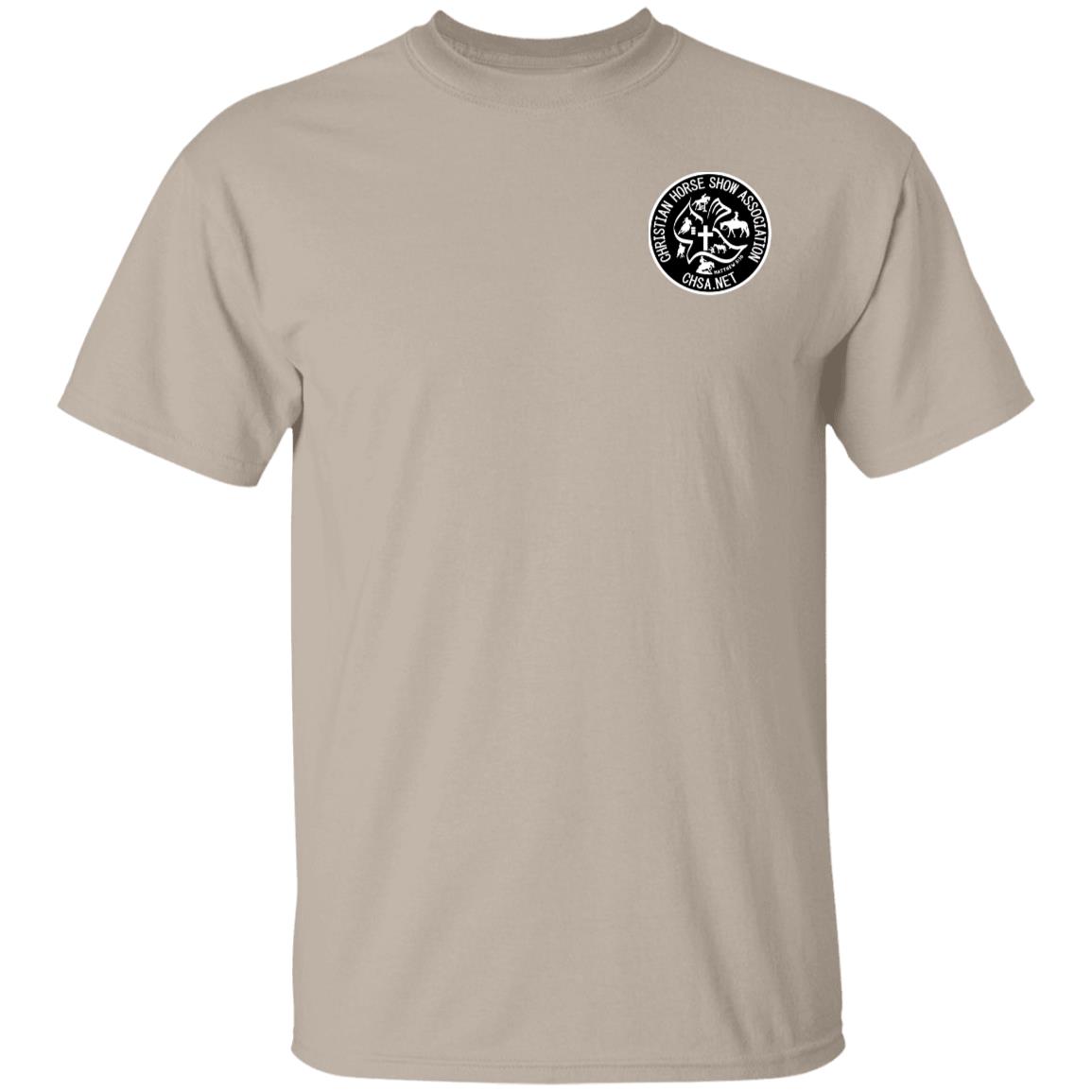 Show your support and share your faith when you wear the Official CHSA Black and White Logo Unisex T-Shirt! Smaller logo on left chest is a great option in situations where you need to be slightly less audacious! Available in assorted colors!