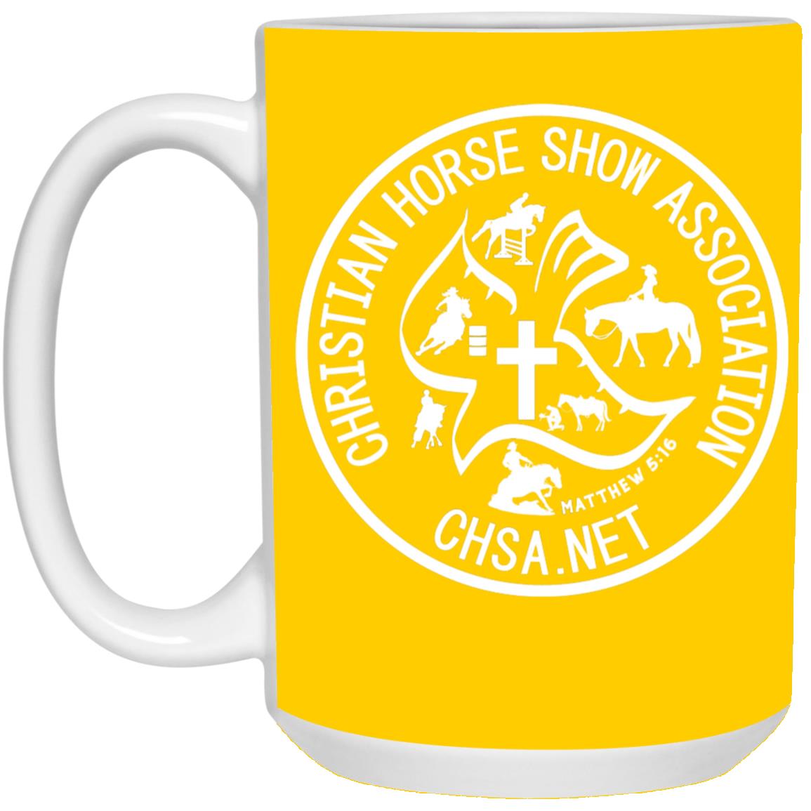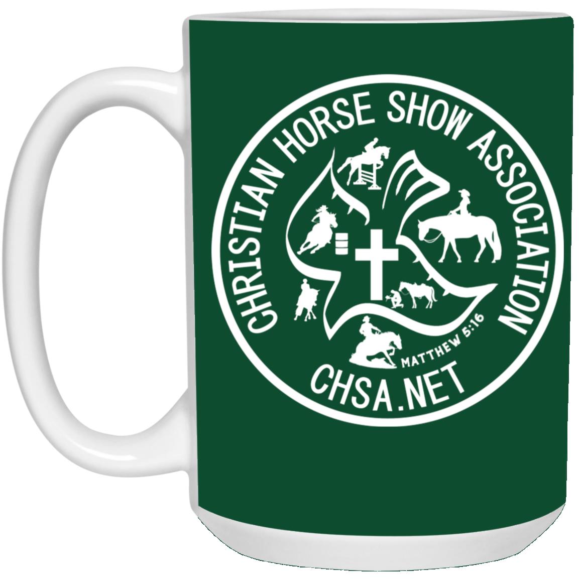 Enjoy your morning coffee or tea in our stylish Official CHSA Logo White 15oz Mug. Boldly share your faith at work or with friends!