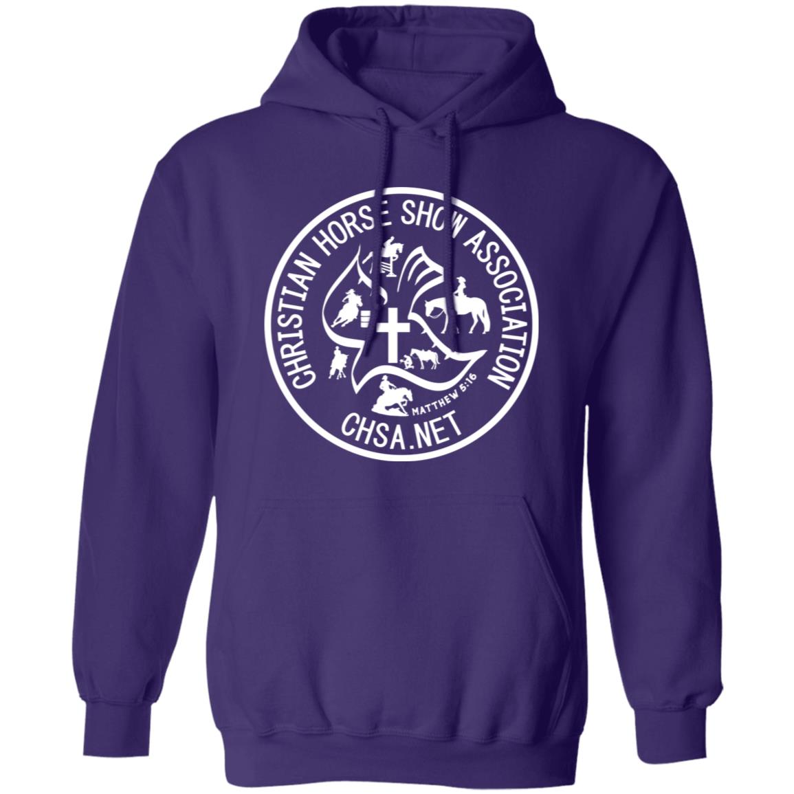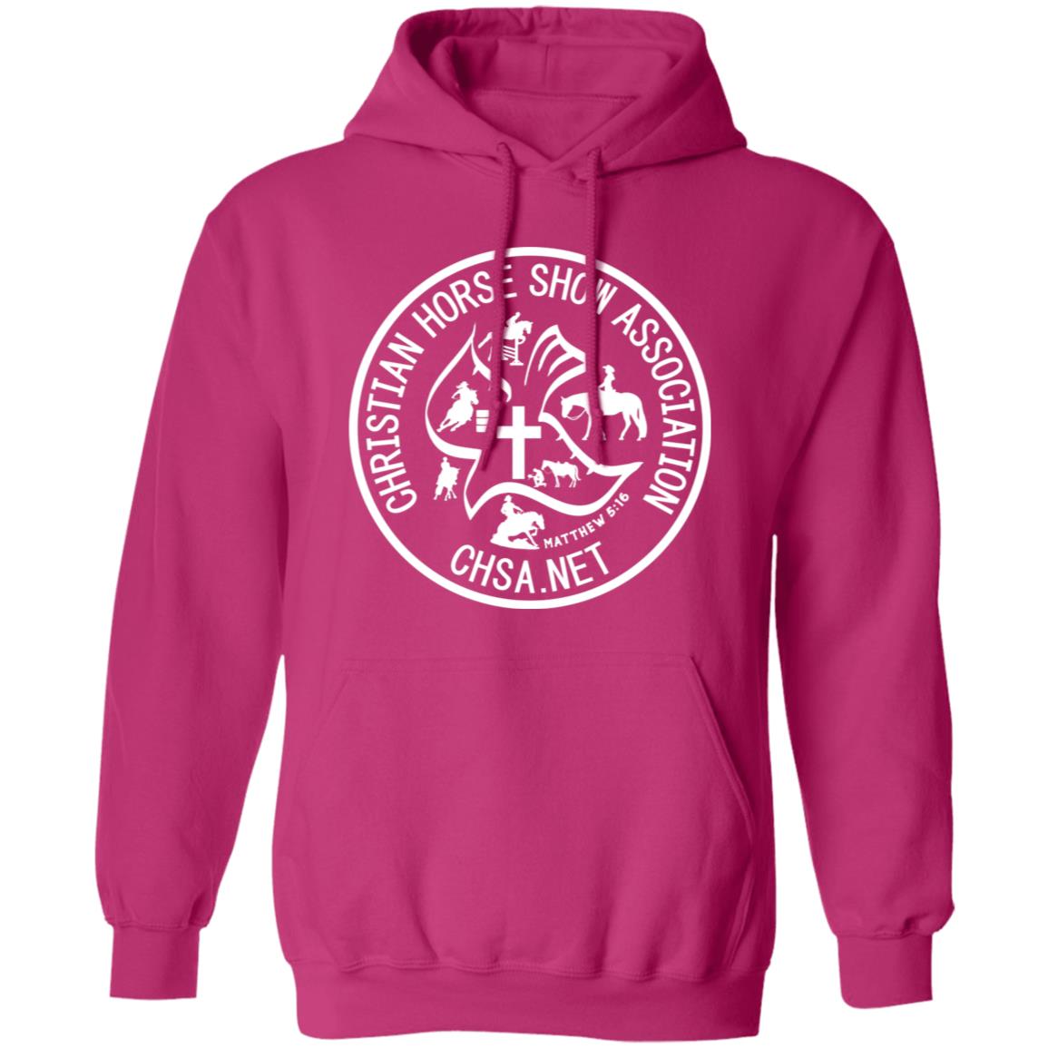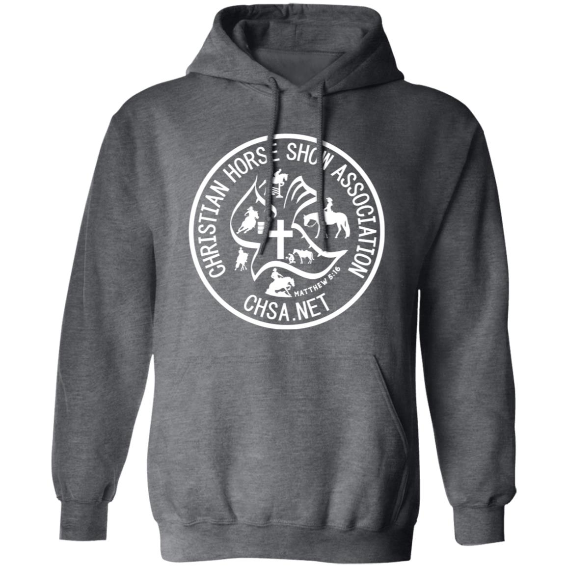 Show your support and share your faith while keeping warm at the barn with this Official CHSA Transparent Logo Unisex Pullover Hoodie! Great for those chilly mornings! Available in assorted colors!