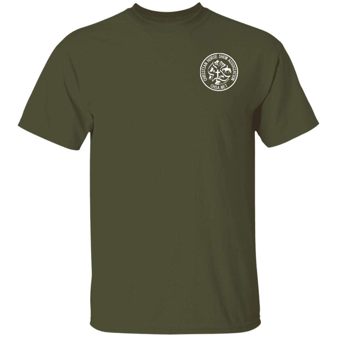 Show your support and share your faith when you wear the Official CHSA Black and White Logo Unisex T-Shirt! Smaller logo on left chest is a great option in situations where you need to be slightly less audacious! Available in assorted colors!